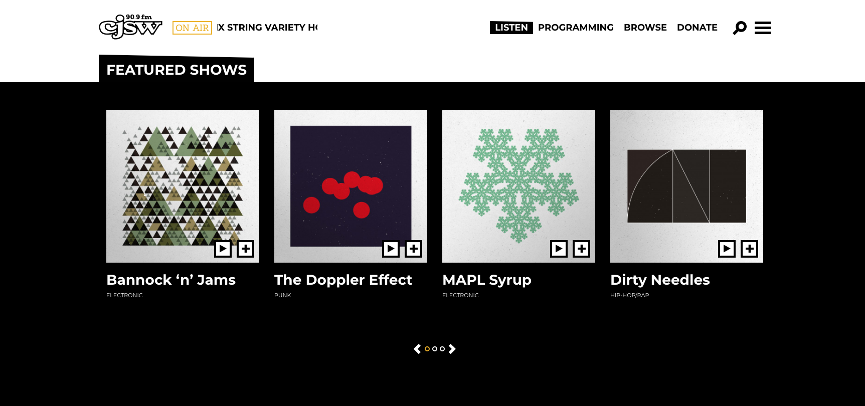 But CJSW’s greatest infrastructure advantage may be its online broadcasting, with a website capable of recording live radio into archived episodes in real time. It provides the 12 latest episodes of all programs, displays the playlists of the songs featured, and embeds an iTunes subscription button. CJSW raised the $100,000 to build the website over two years after listeners consistently requested its key features.