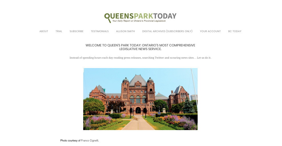 Queen’s Park Today is not for the average reader, Smith acknowledges, but rather for people in “the business of government,” such as unions, lawyers, consultants or private firms with government relations teams. The newsletter does not count any MPPs among its subscribers; although some government bureaucrats subscribed in the past, Smith said, they had to cancel last summer as part of cost-saving measures introduced by Ontario Premier Doug Ford.