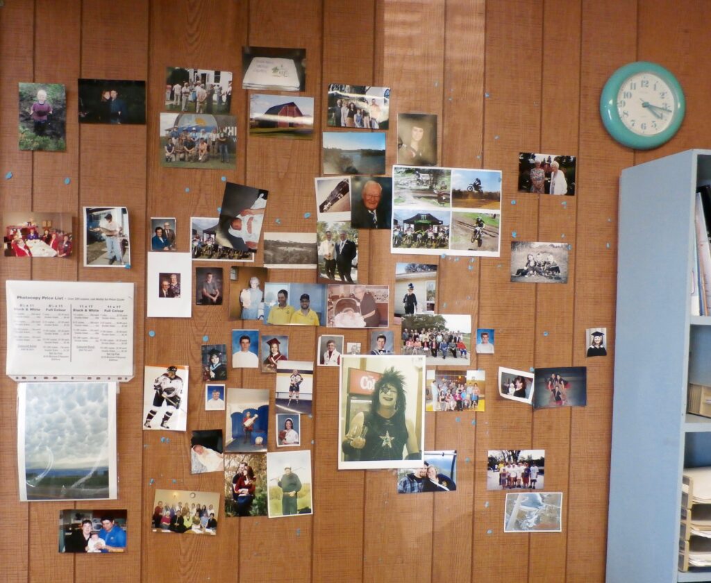 The office of the Deloraine Times & Star is home for Wells. The paper’s former office, just next door, now houses a tanning salon. Photo of office wall taken July 9, 2018 by Angela Long