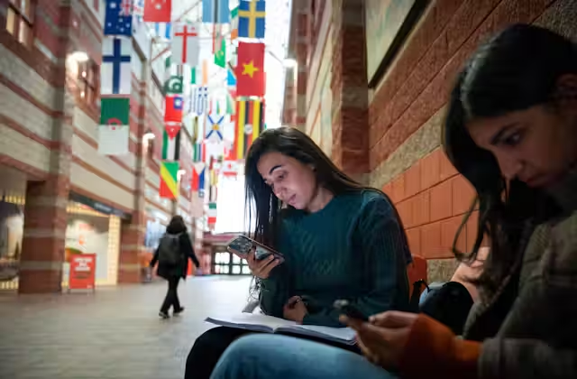 Two international students who attend Cape Breton University, one of many Canadian universities where rapid international recruitment has left many overseas students struggling with housing, jobs, and community integration. (Photo credit: THE CANADIAN PRESS/Steve Wadden, via The Conversation (CC BY-ND 4.0)