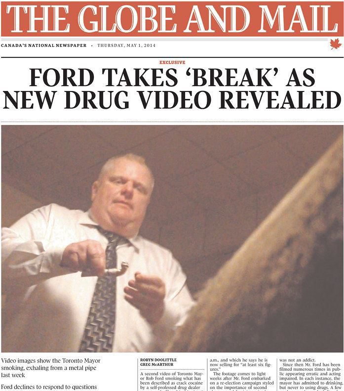 “It gives The Globe and Mail no pleasure to revisit once again the troubling social behaviour of Toronto’s mayor, Rob Ford,” Walmsley said. “But in this instance, the Globe felt it was a matter of public interest, and that readers needed to see what our reporters watched and reported on.”